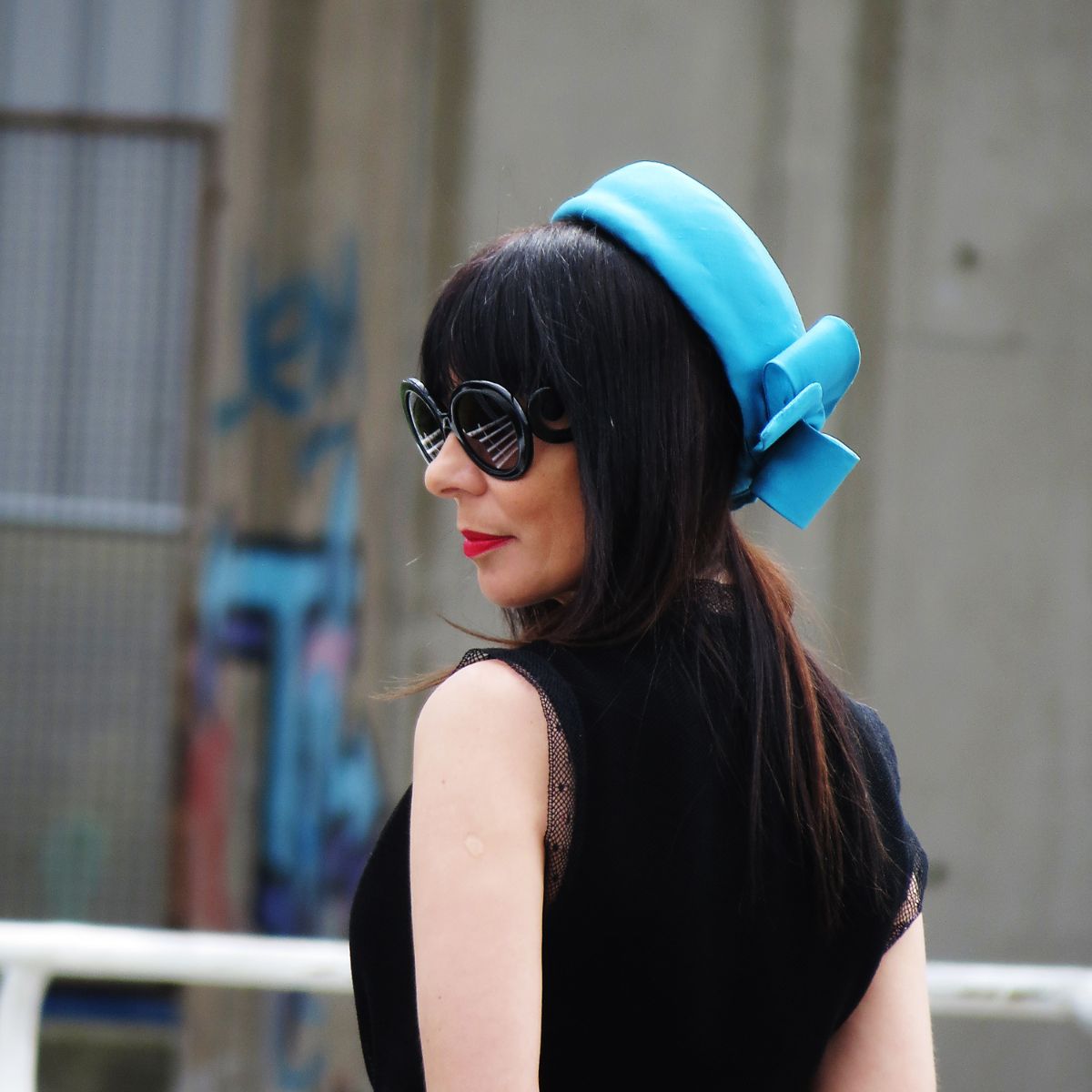 Sculptural turquoise silk pillbox with signature bow.