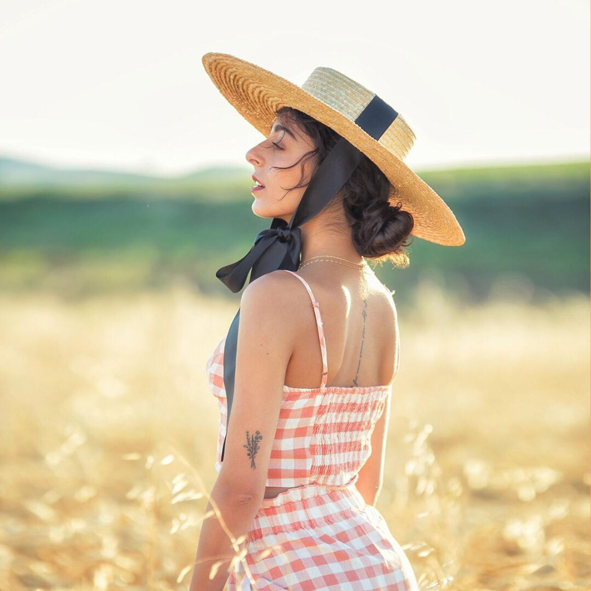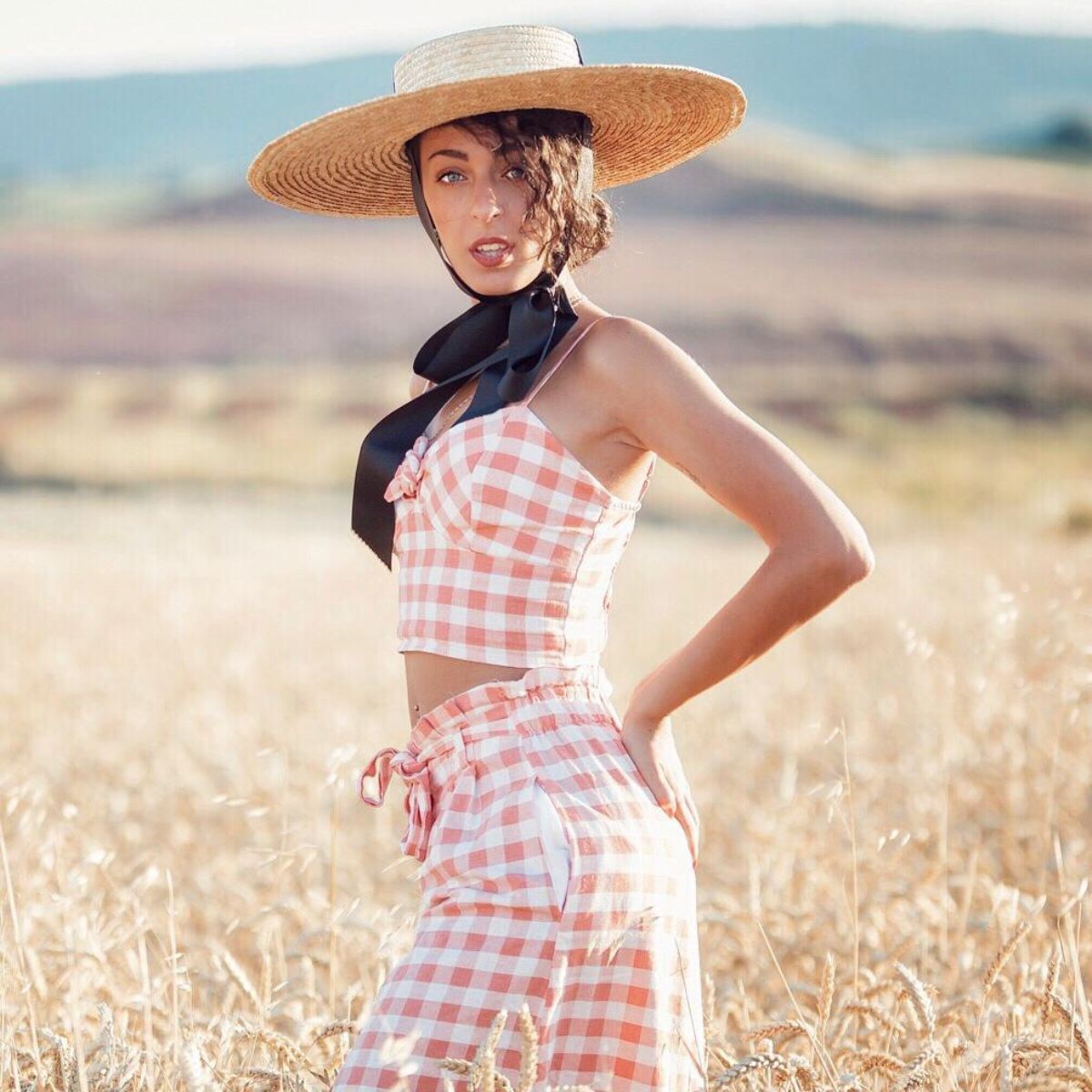 A timeless straw boater hat handcrafted from natural straw and finished with a black ribbon detail. Elegant, feminine and effortlessly refined, it is a beautiful piece for summer days, weddings and special occasions.